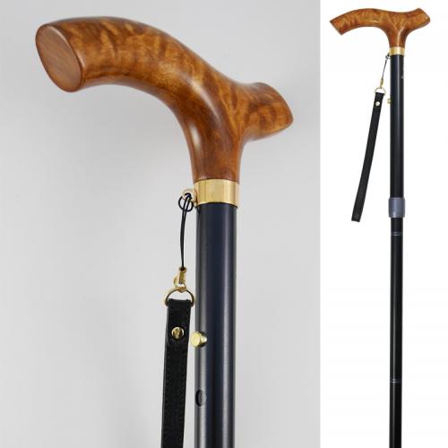 ハンドルに、ギターの素材としても有名な浮き出たような杢目が美しい「キルテッドメープル」を使用した4つ折アルミステッキです。