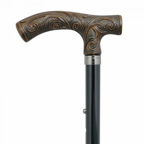 イタリア直輸入の唐草ハンドルを手元にあしらった、上品さと実用性を兼ね備えた国産アルミステッキです。落ち着いたブラックカラーに、折りたたみ・長さ調節といった日常使いしやすい基本機能をしっかり備え、外出時にも取り入れやすい一本に仕上がっています。