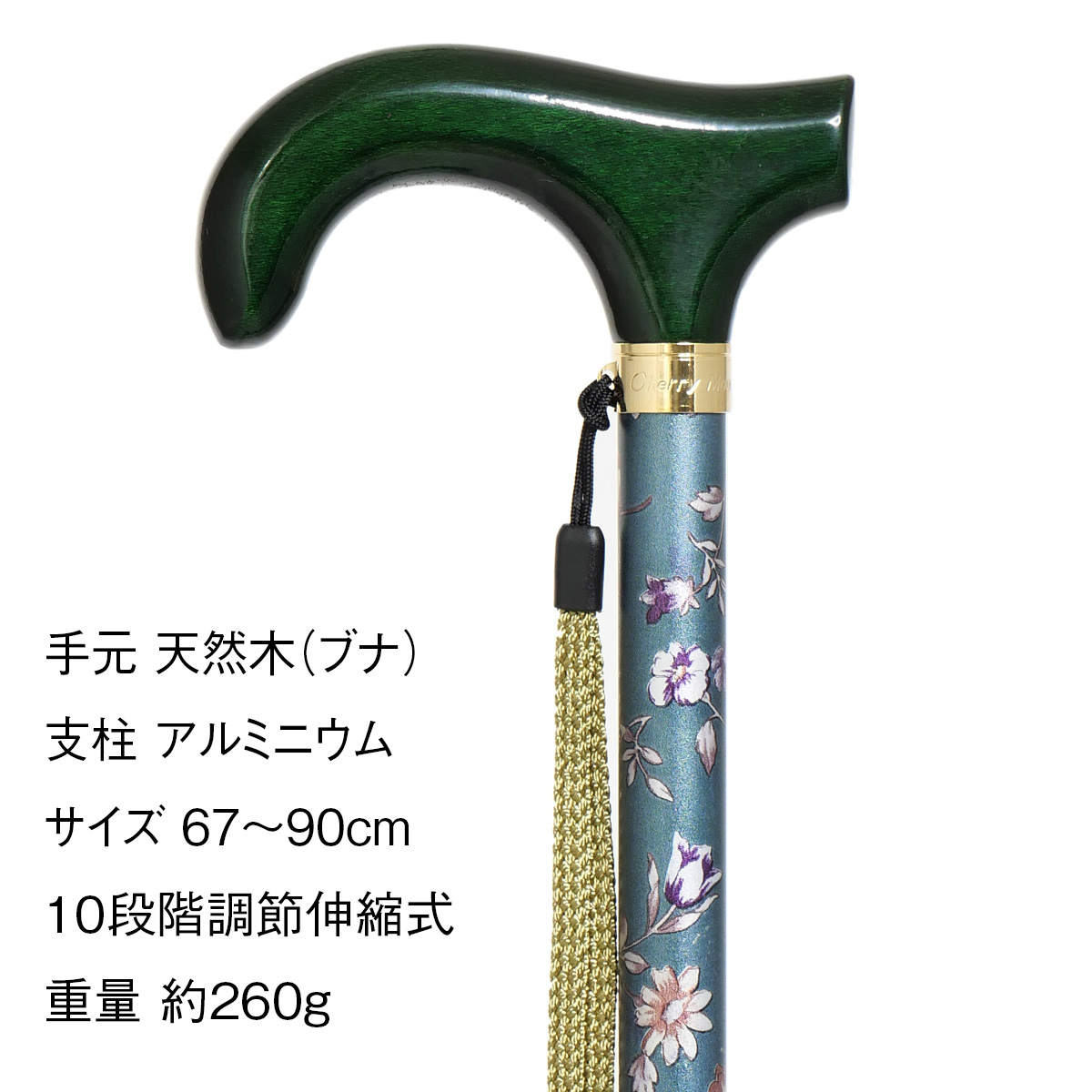※このステッキは艶消花柄伸縮式アルミステッキの「グリーン」です。