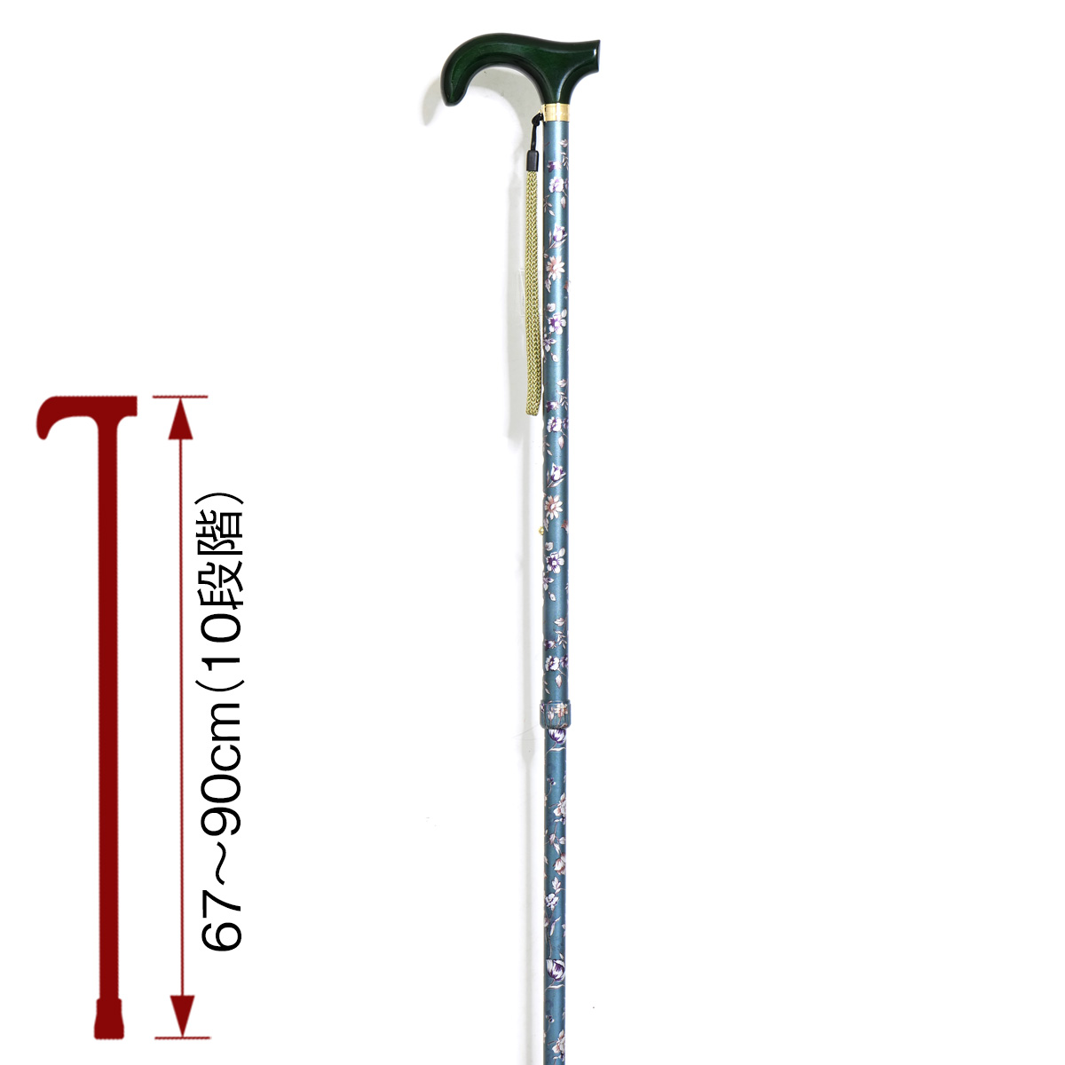 長さ調節が可能なおしゃれな花柄アルミステッキです。