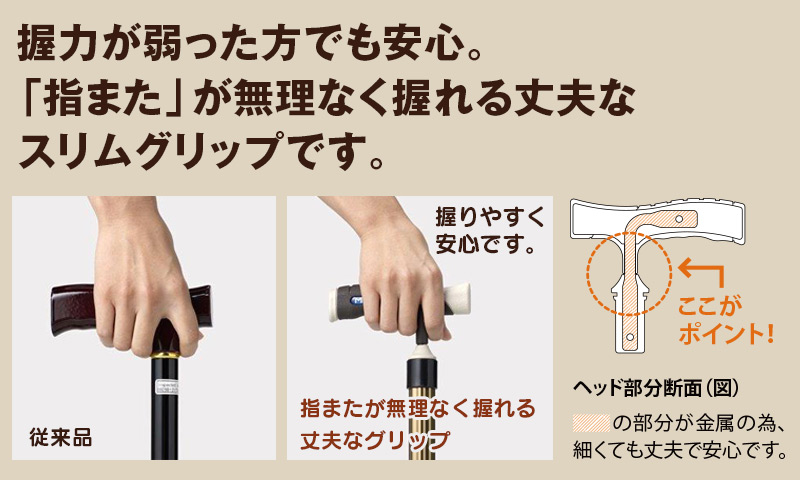 握力が弱った方でもしっかり握れて、安心してお使いいただけます。