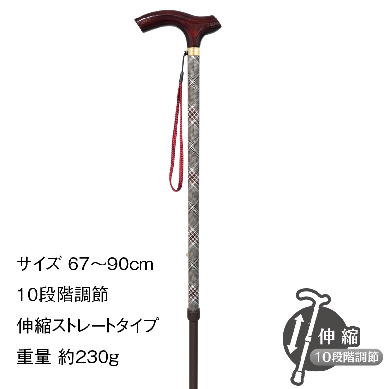 基本機能を備えたベーシックなアルミステッキ(ストレート伸縮タイプ)です。