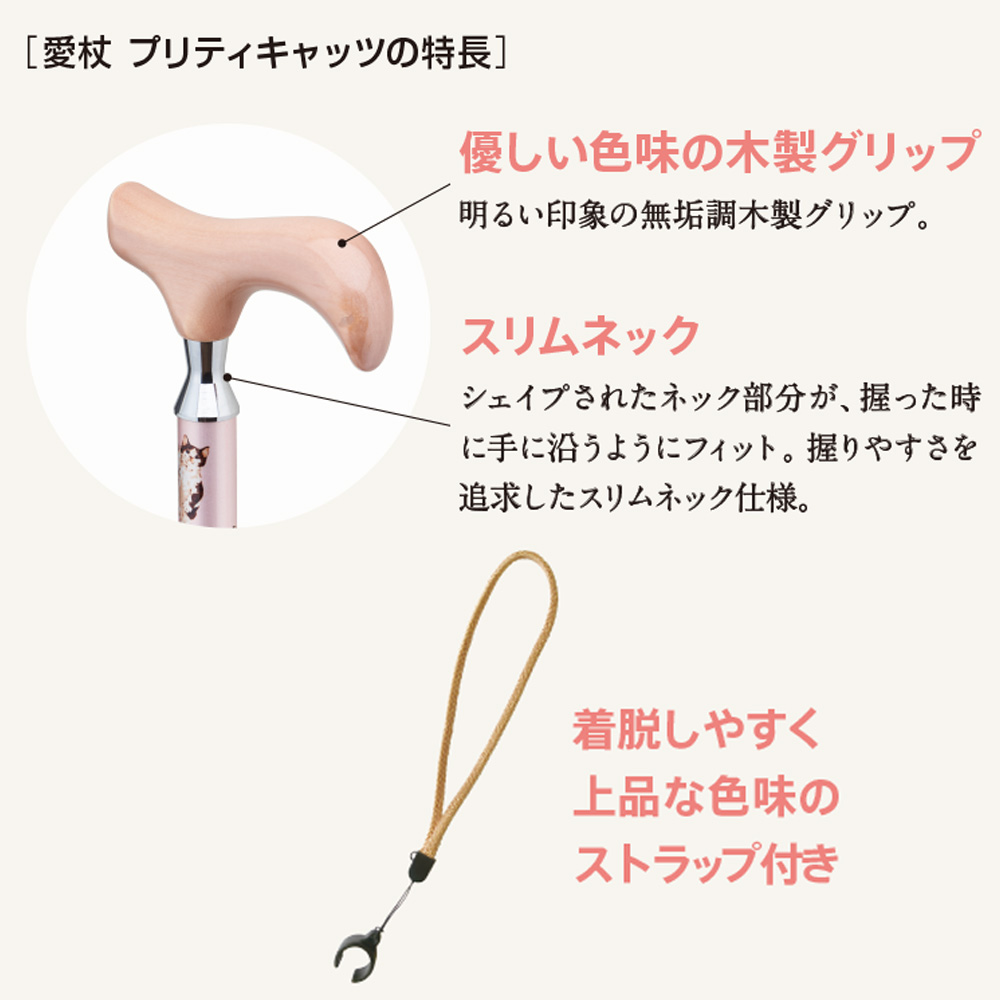 杖の長さ:約75〜85cm (2.5cm間隔の5段階調節式、折りたたみ時長さは約29cm)