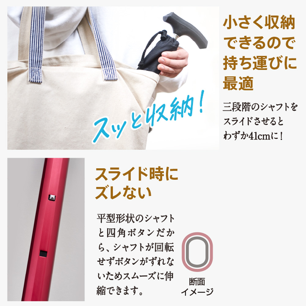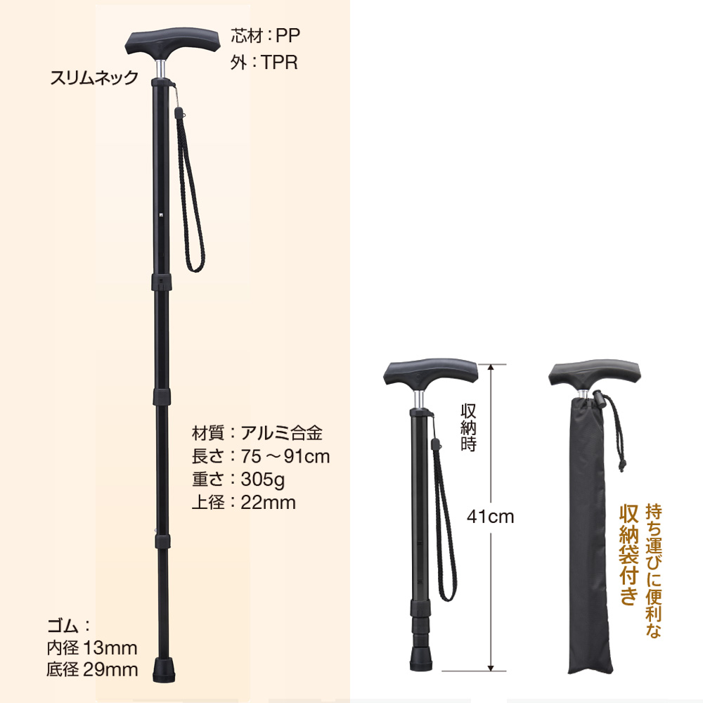 杖の長さ:約75~91cm (4段階調節式、収納時長さは約41cm)