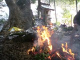 雪が舞う2月のこの時期に「山の神」を祀るのが何故かと疑いながら運動不足で息咳きながらも山の中腹の社にたどり着いた。恒例の山林所有者だけの安全を祈願する習わしに参加し、献上の米を焚き火で蒸した「おまじない」を皆で食して安全祈願をするのだ。 この日だけは、山里に古くから伝わる週間を何とか残したいと願うのだが。