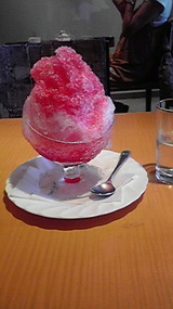 蒸し暑い東京。普段の銀座は東京湾の涼しい風が吹き込むのだが今日ばかりは頭が痛くなるような暑さ。伊東屋のエレベーター脇に「かき氷始めました」とのラベルに思わずいつもは用のない9階まで。サッパリしますとの誘いでイチゴのかき氷を・・・ 今年初めてで最後かもの久しぶりの味を堪能したが、少し量が多くて頭ではなく背中まで冷え込んでしまったのかイタイ感が走った。