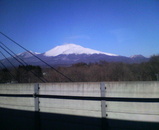 長野新幹線「あさま」の車窓から見る「浅間山」。オリンピックの年も雪が少なかったが2月になって積雪があったとのこと、雪の多い松本にも雪が無くこのままではスキー場は閉鎖になってしまうことを地元の人は心配していた。地元紙信毎には「真冬にキノコ」という例年にない少雪と暖冬のトピックが掲載されていたのも暖冬長野だった。