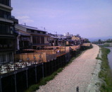 真夏を思わせる暑い京都。でも賀茂川を吹き抜ける風はさすがに五月の爽やかさが心地良かった。そんな天然のお座敷で昼間から贅沢さを味わっているのは多分京都見物の観光客なのだろうか? 冷房の中で食事することに慣れてしまった人たちが天然冷房で食事することの味わいを思い出すだけでも京都観光は「京都議定書」の理解に役立つことにならないかナ~(?)等と考えながら汗を拭きながら取引先へ。