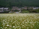 白いそばの畑と茅葺きの里。信州ではなく、丹波の美山の里である。 初秋の丹波路ではそばの花が盛りだ。