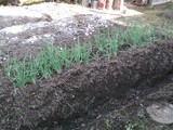 初の収穫「九条葱」である。 この夏に花壇(かなり荒れ放題の)を畑に改修し、近所の人の指南で土に肥料を加えてやっと「葱」が生育した。 どんな収穫になるか、最小単位の「自産自消」が実現した。 白く見えるのは石灰による土壌のアルカリ化によって次なる作物に期待をする次第
