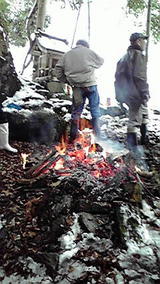数センチ積もった雪の山道を数分登った所に祀られている神に今年の無事を願い手を合わせた。 共有する山林の所有者が集まって神事(簡単な)をするだけのことであるが、この時は世界や政局のことより狭い丹波の山に携わる数人の無事故と共に真剣に山に向かい合う日本の山林への営みが本当に窮している現況を誰が回復するのだろうか。 山ノ神も切に心配しているのではないだろうか・・・