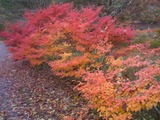 「ドウダンツツジ」は春先の白い可愛い花をつける頃と同じように地味な色付きの紅葉で雨上がりの公園の路を飾っていた