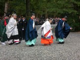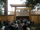 千三百年にわたって受け継がれている第62回目の「式年遷宮」が内宮に引き続いて昨夜外宮の儀が行われたので、今朝9時前に参拝をし、10時から天皇陛下からの捧げ物を奉る「奉幣」の催事を大勢の参拝者に混じって見物した。
