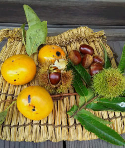 畔に一本の小さな柿と栗ノ木の実が本日のささやかな収穫です。