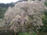 京都・紅葉の名所高尾から約20分、小野郷の里の一軒の民家に咲くおそ咲きの「しだれ桜」は今年もつっかえ棒で支えられてながら満開を過ぎてもいっぱいの花をつけて待っていてくれた。(勝手に想いながら)