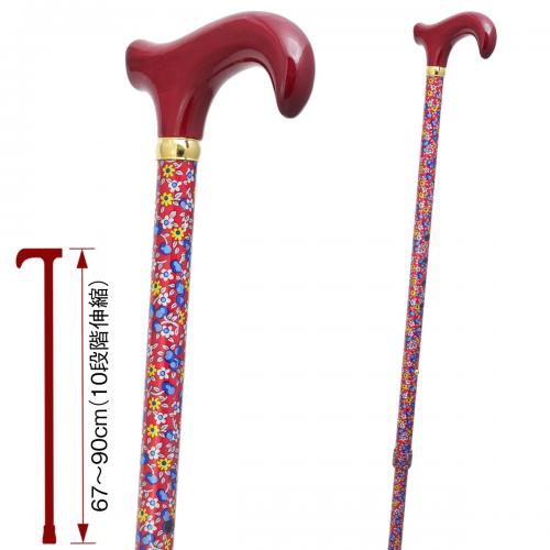 ※このステッキは小花柄伸縮式ステッキの「支柱色:レッド(ハンドル色:レッド)」です。