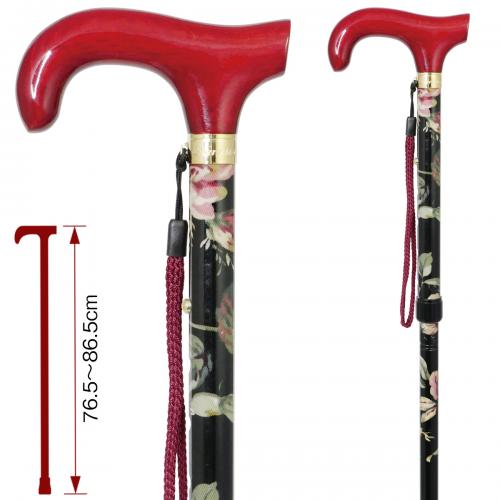大輪の花を描いたデザインが魅力のダービー型ハンドル四つ折りアルミステッキ。