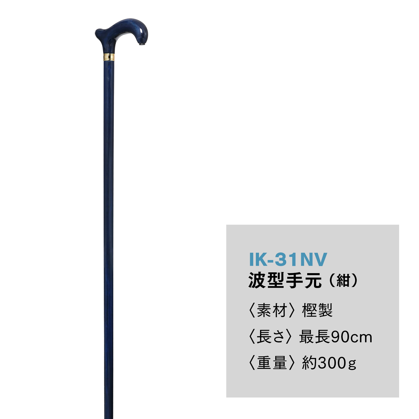 【国産木製ステッキ IIDA STICKS】 波型手元〈紺〉(IK-31NV)