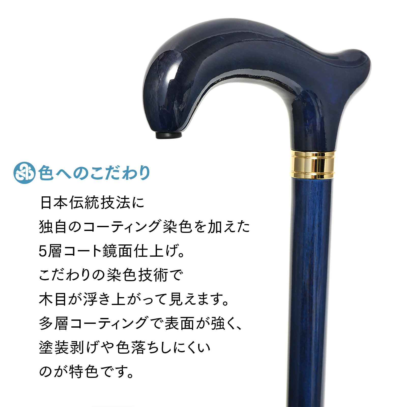 傷に強く美しい、5層コート鏡面仕上げの波型手元ステッキ。