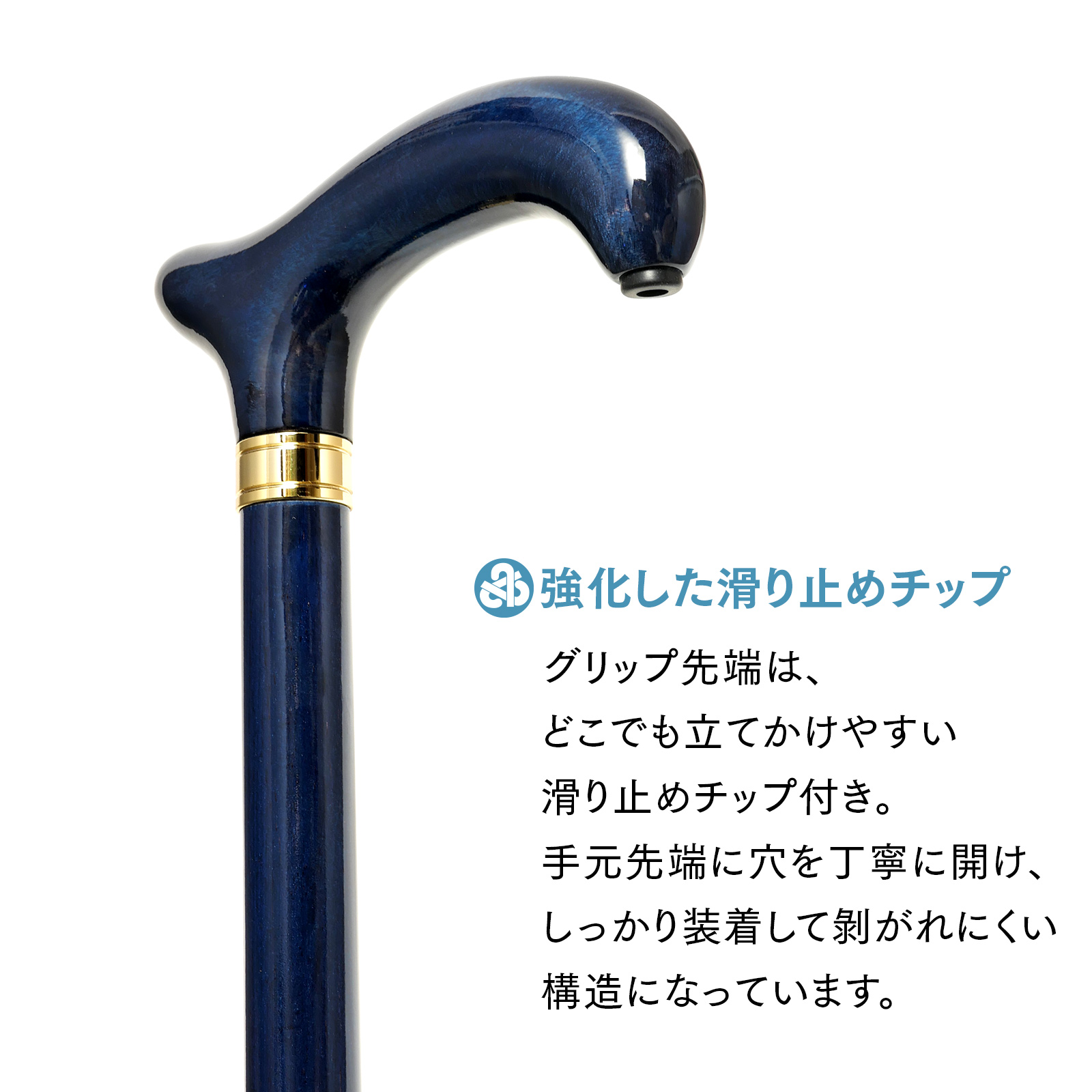 手元先端にゴムチップをネジで装着し、テーブルやカウンター等から滑り落ちにくい構造になっています。