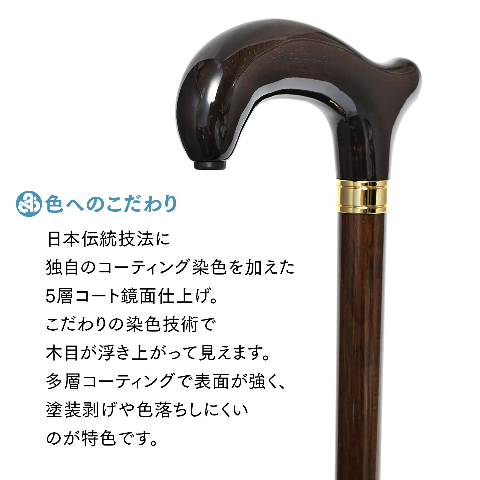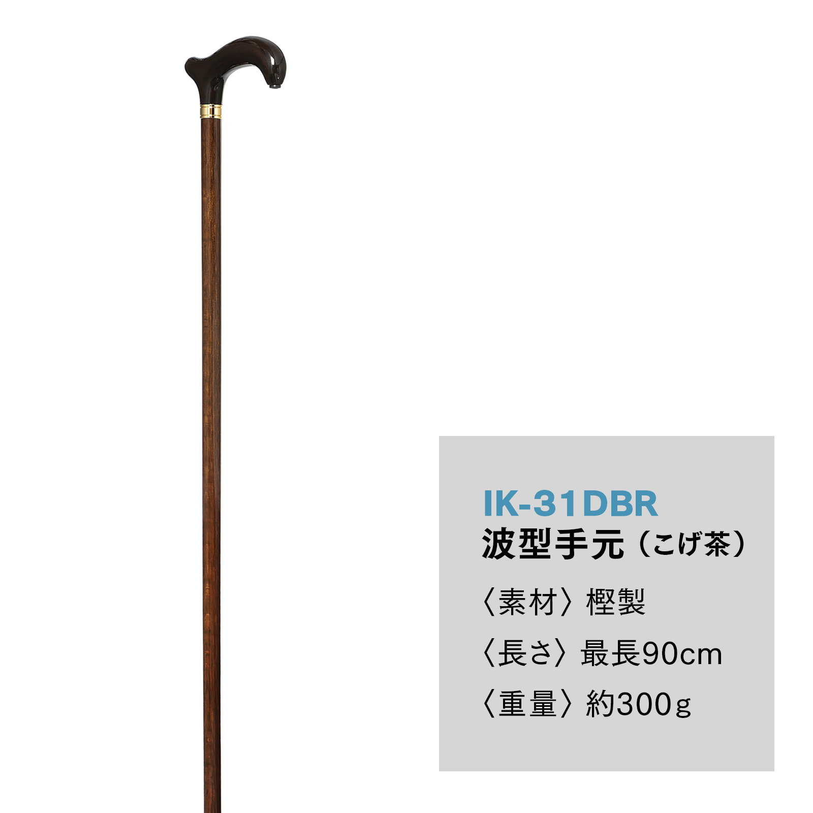 【国産木製ステッキ IIDA STICKS】 波型手元〈こげ茶〉(IK-31DBR)