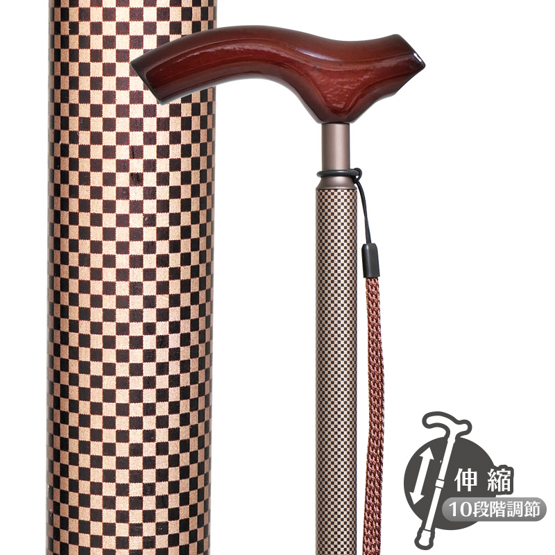 引き締まった都会派の印象を与えるチェック柄の10段階伸縮アルミステッキです。