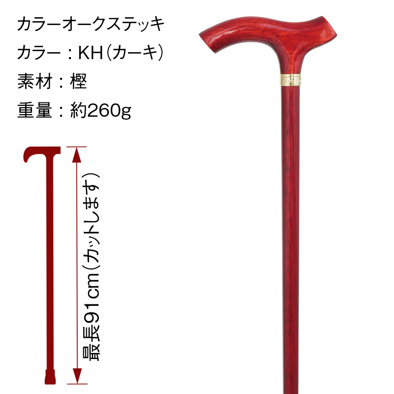 ※このカラーオークステッキシリーズは、ブラウン・ワインレッド・レッド・カーキの4色があります。
