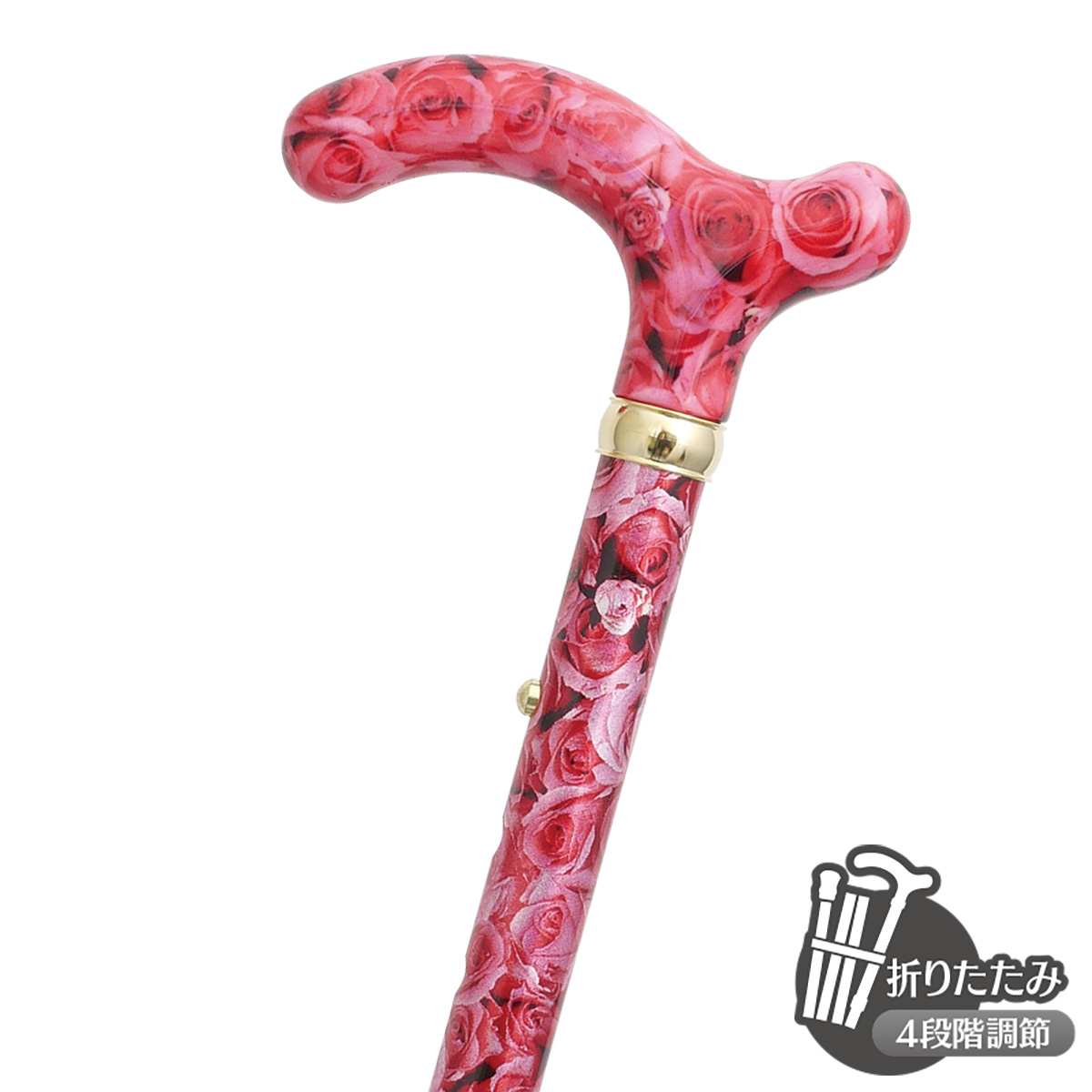 4段階の長さ調節が可能なおしゃれな花柄デザインのアルミステッキです。