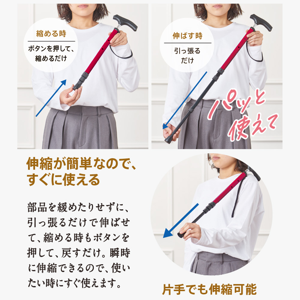 杖の長さ:約75~91cm (4段階調節式、収納時長さは約41cm)