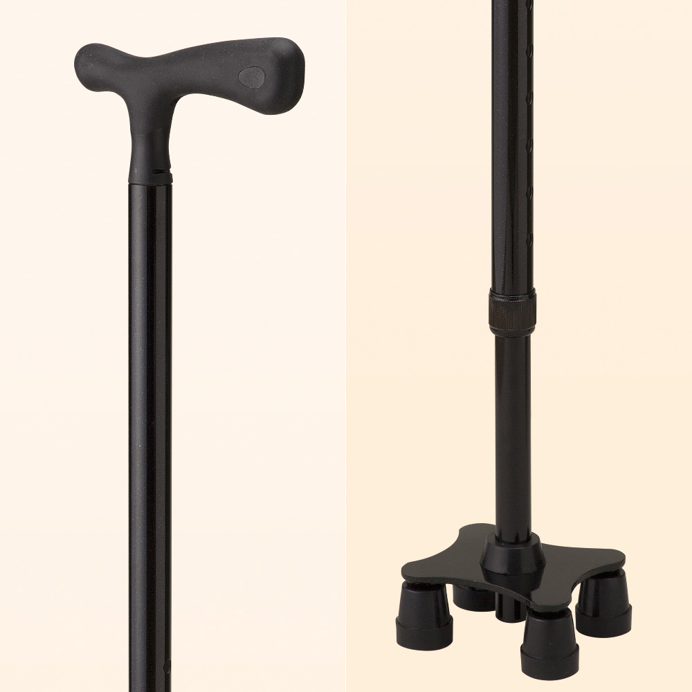 倒れにくい自立型の、室内でも扱いやすい小型4点杖。